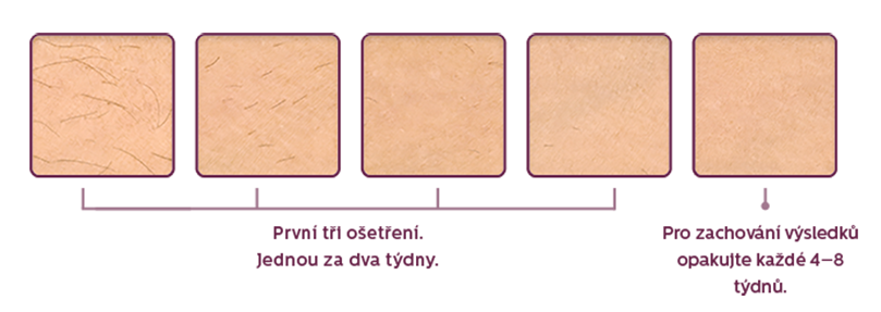 Prvních čtyři až pět ošetření doporučujeme provést každé dva týdny. Už po třech ošetřeních dochází až k 85% redukci chloupků při použití Philips Lumea IPL Advanced a až o 92 % chloupků s luxusním přístrojem Philips Lumea IPL 9900 Series. Potom už stačí opakovat ošetření v intervalu 4-8 týdnů, abyste si skvělé výsledky udržela.