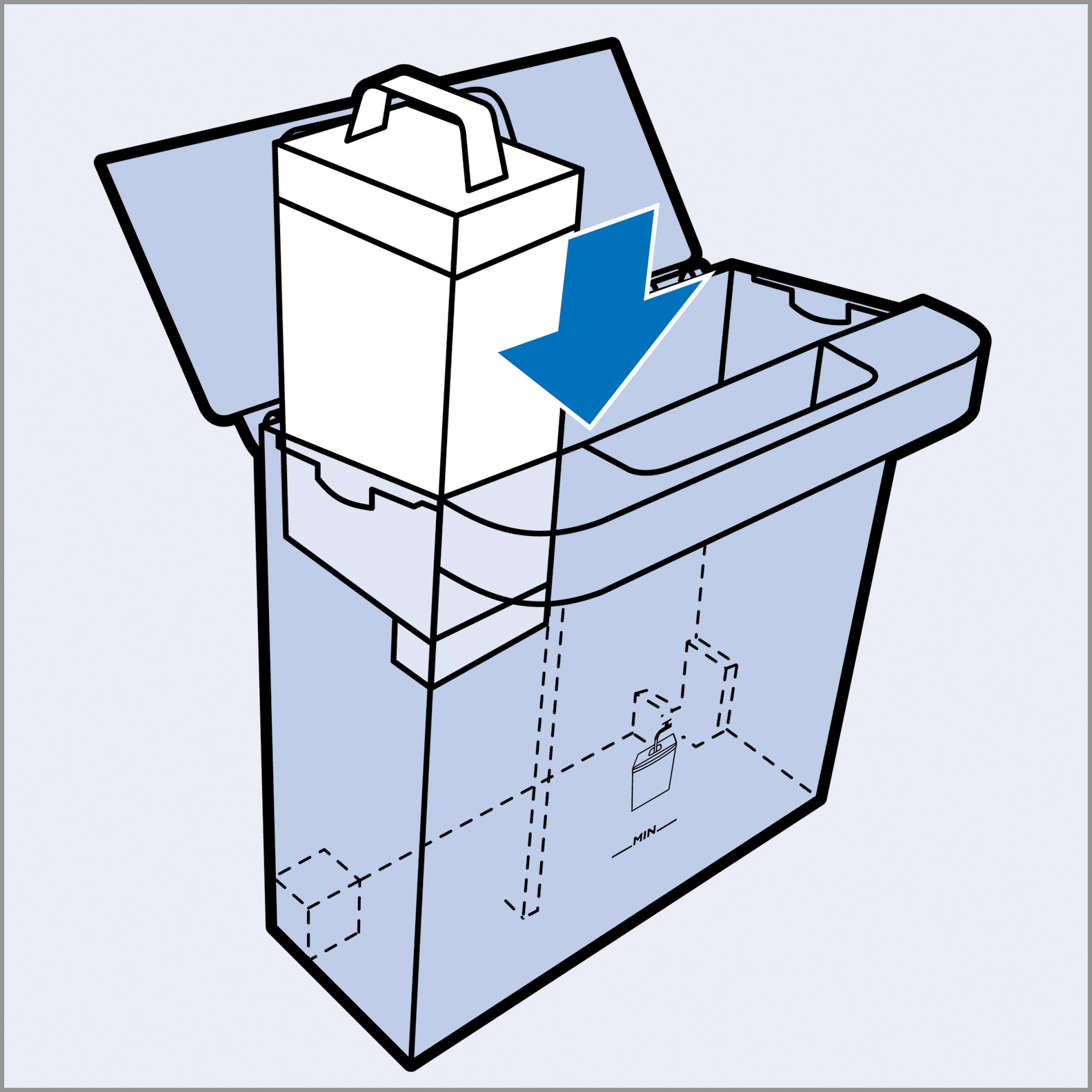 Vložka proti vodnímu kameni se snadno vyměňuje. Jednoduše vyjměte vložku proti vodnímu kameni z nádržky na vodu a vyměňte ji za novou. Starou vložku proti vodnímu kameni lze zlikvidovat společně s běžným odpadem.