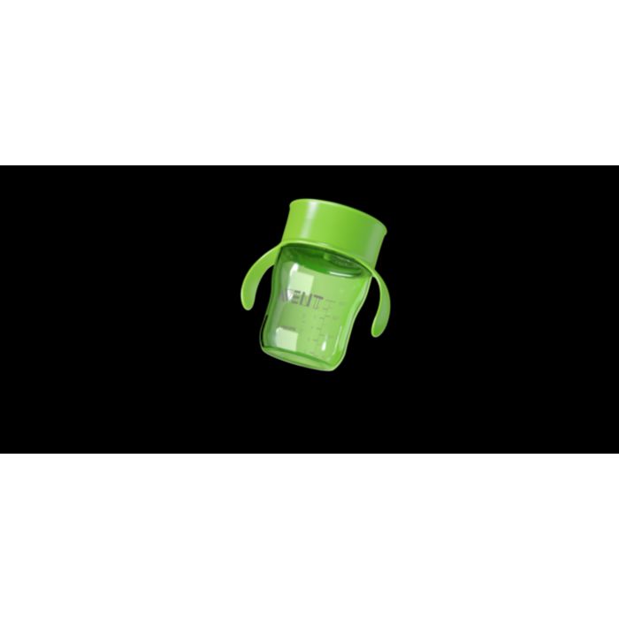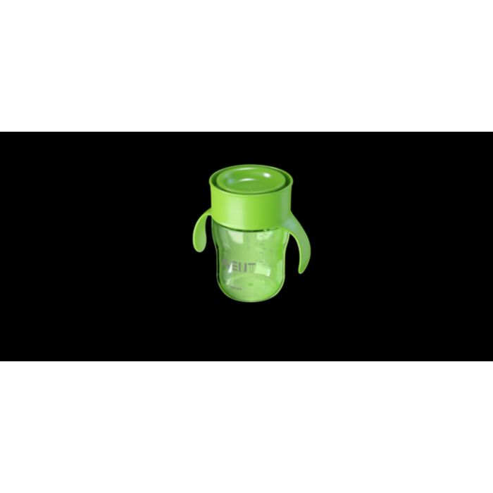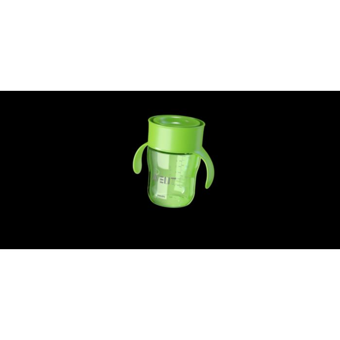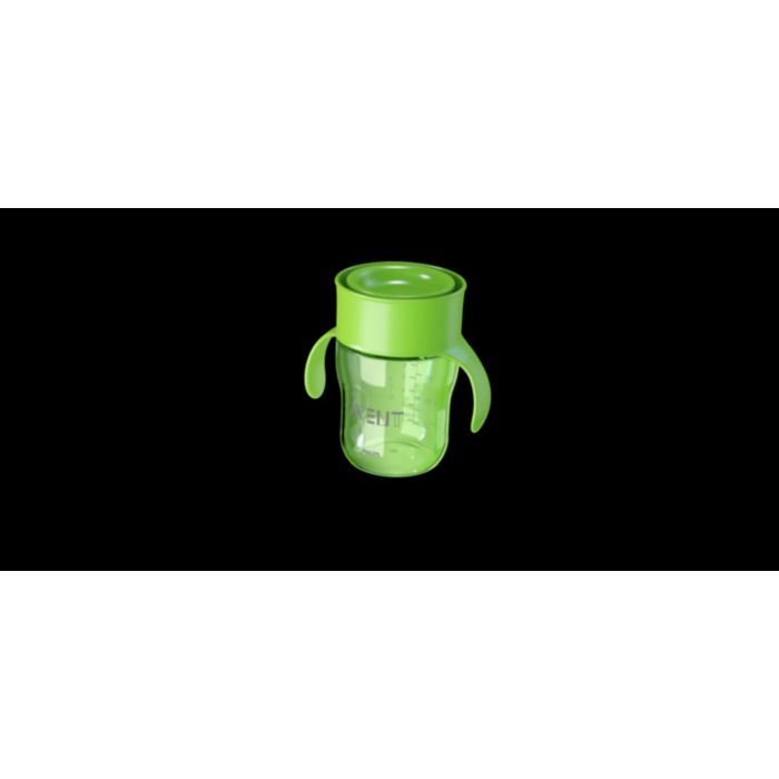 Tento hrneček bez hubičky umožňuje pití po celém obvodu z 360 °, stejně jako u hrnečku pro dospělé.