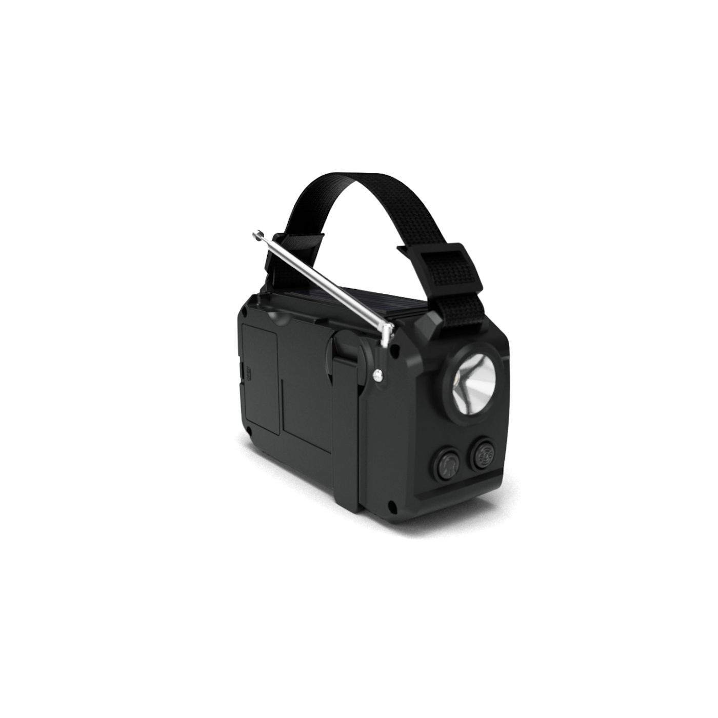 Nikdy neztratíte napájení! Vždy budete mít k dispozici záložní napájení pomocí solárních panelů na horní straně rádia nebo otáčením přiložené ruční kliky. Rádio také využívá 3 baterie AAA (nejsou součástí balení). Port USB-A umožňuje v případě nouze použít rádio k nabíjení dalších zařízení.
